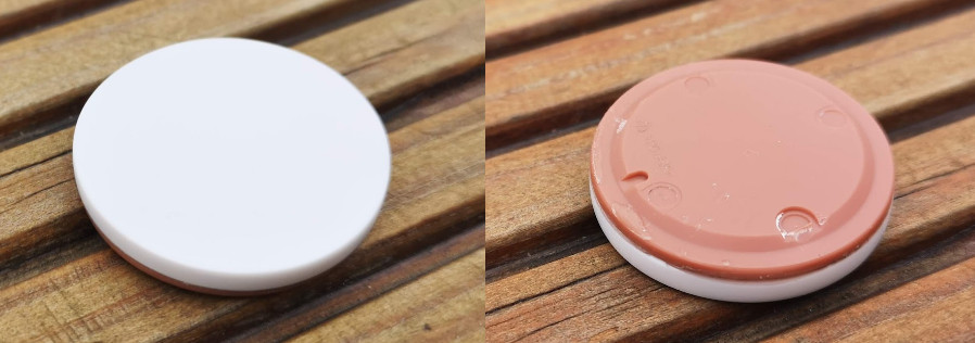 I previously tried to resolve this flaw by swapping the buttons between faceplates to make sure the button was the only high-contrast element on the faceplate. This left the doorbell with the following appearance: